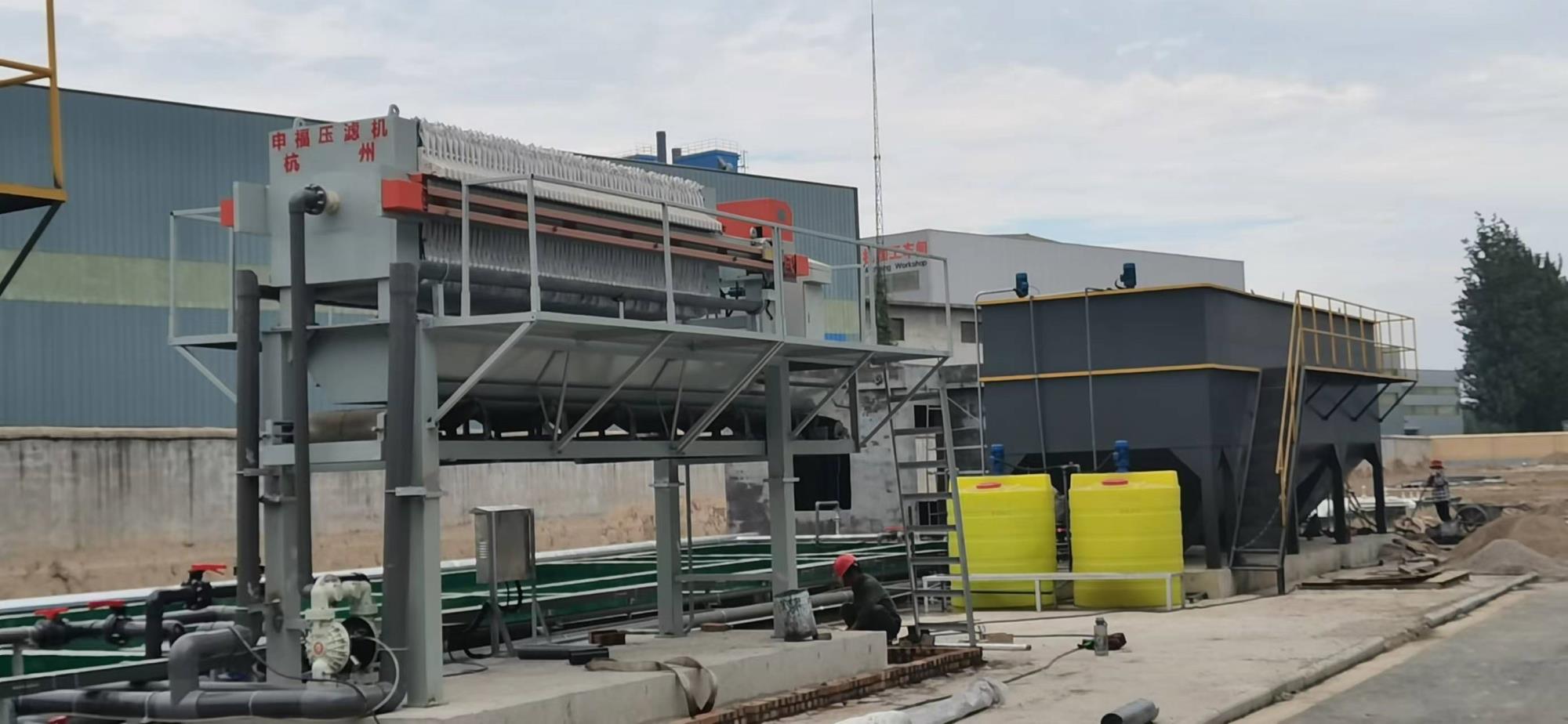 污泥進(jìn)入污泥池經(jīng)板框壓濾機(jī)之后泥餅外運(yùn)處理。