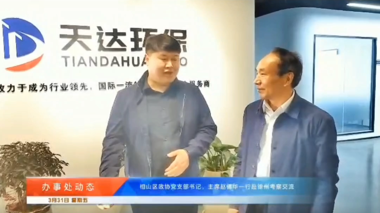 3月31日,安徽省淮北市相山區(qū)政協(xié)主席趙德華一行領(lǐng)導(dǎo),蒞臨江蘇天達(dá)環(huán)保設(shè)備有限公司考察交流,天達(dá)環(huán)保負(fù)責(zé)人張羅通熱情接待,并表示熱烈歡迎。